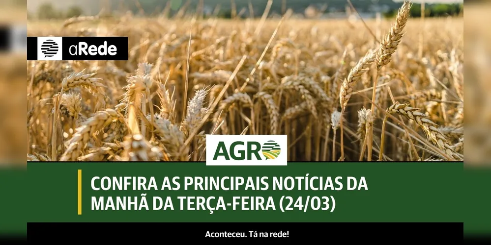 Acompanhe as principais notícias do agronegócio da manhã da terça-feira (24/03) no 'Boletim Agro' do Portal aRede.