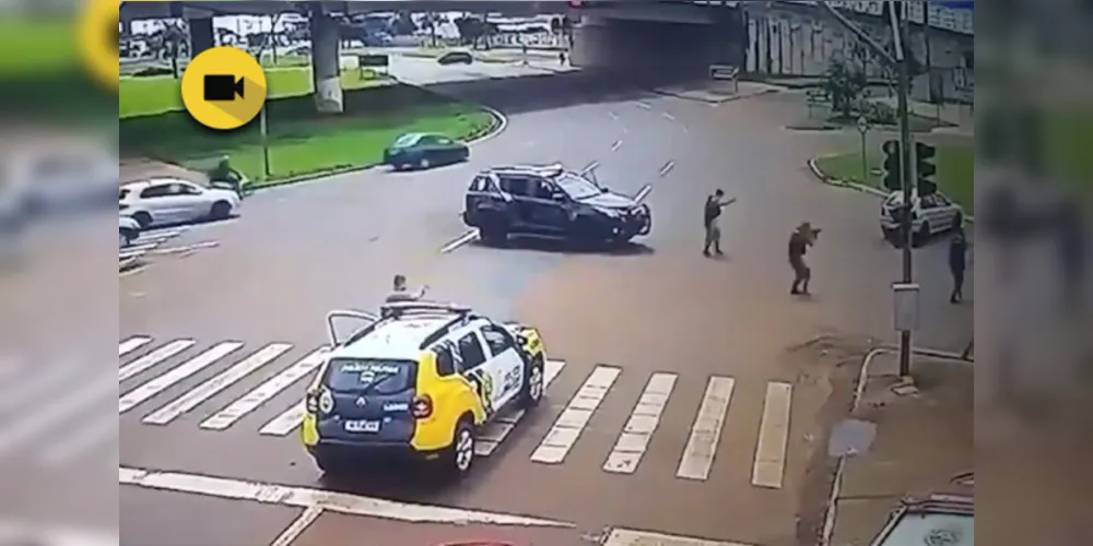 Uma câmera de segurança flagrou o momento em que a equipe do Choque, da Polícia Militar (PM), tentou parar o veículo em que estavam os três suspeitos que morreram durante um confronto com policiais entre Sarandi e Maringá, na tarde de domingo, 17. Os policiais de Maringá foram acionados pelas equipes de Marialva e tentaram fazer o cerco aos suspeitos.