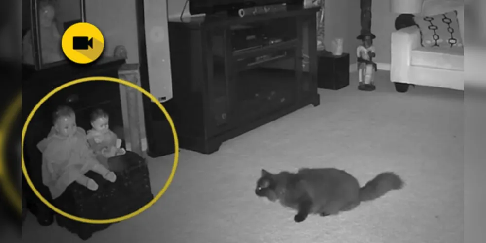 No vídeo, é possível ver uma sombra fantasmagórica saindo de uma boneca e perseguindo o gato da casa. Clique na foto para assistir à imagem gravada por uma câmera de segurança