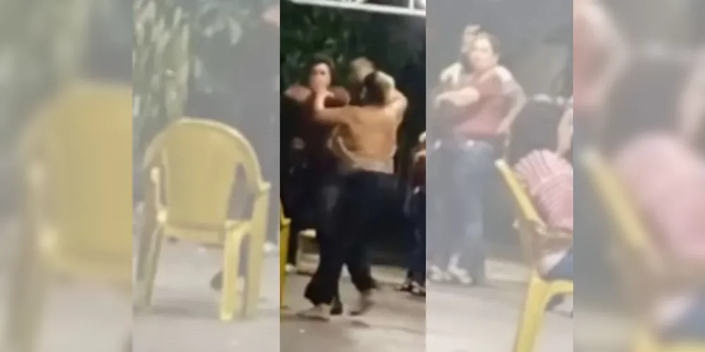 Em seguida, há o início das agressões entre mãe e filho: ela parte para cima, ele a empurra, e ela volta. Depois, ele dá um empurrão mais forte e ela cai de costas no chão, enquanto o filho se afasta e vai embora. A mulher é socorrida por testemunhas.