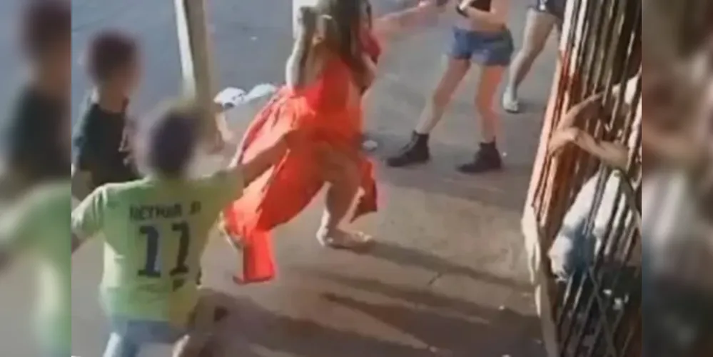 Pelas imagens é possível ver que a suspeita faz um gesto, parecendo chamar a vítima para briga. Durante a discussão, Jéssica joga uma lata de cerveja no rosto da autora.