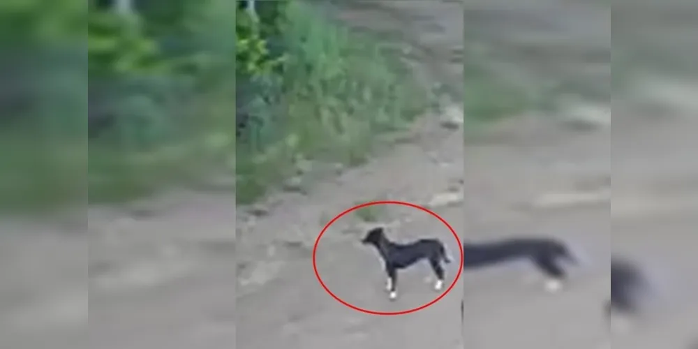 Horas depois, a cadela foi flagrada pelas câmeras de segurança. Desesperada, ela anda de um lado para o outro. O animal ficou 24 horas na rua.