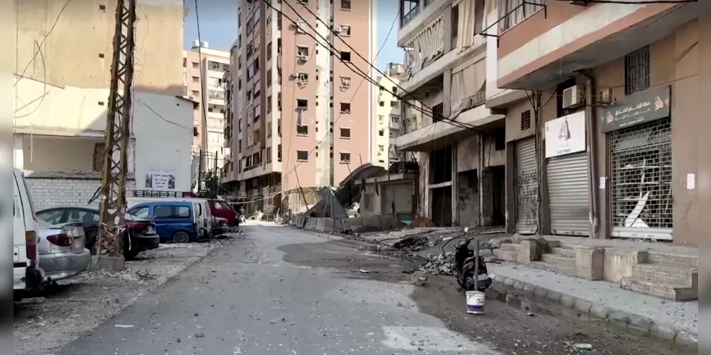 Fumaça e danos nos subúrbios ao sul de Beirute após ataques israelenses nesta terça-feira (3) -