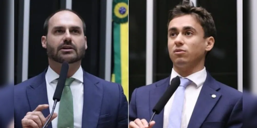 O deputado Nikolas Ferreira (PL-MG) e o ex-deputado Eduardo Bolsonaro protagonizaram um bate-boca nas redes sociais neste sábado (4). A troca de críticas teve início após uma reação com "kkk" — interpretada como deboche — feita pelo parlamentar mineiro.