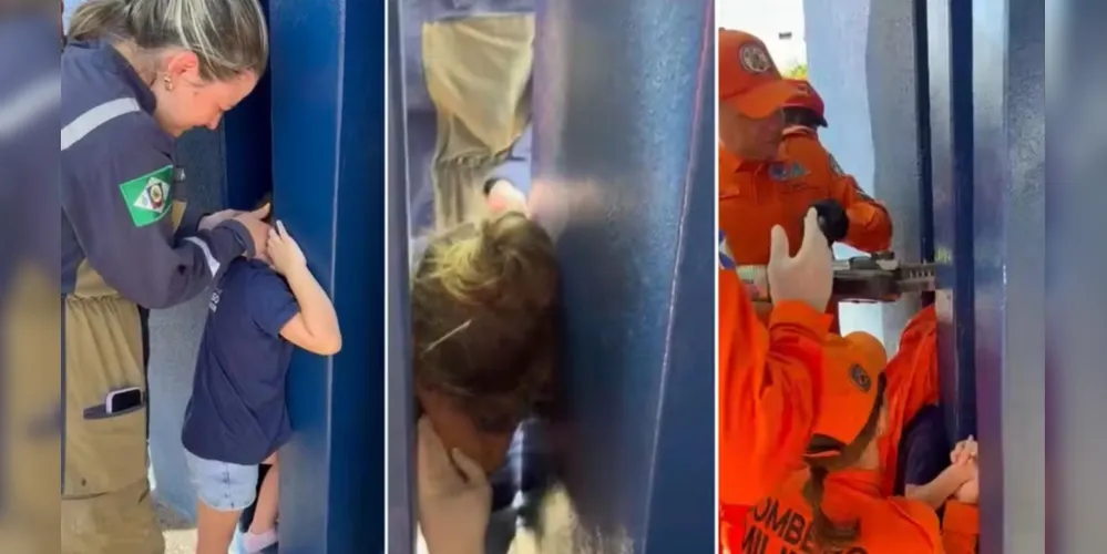 Um vídeo registrado no local mostra o momento do resgate. Nas imagens, uma bombeira segura a criança enquanto outros militares atuam no corte da viga, garantindo a retirada segura.