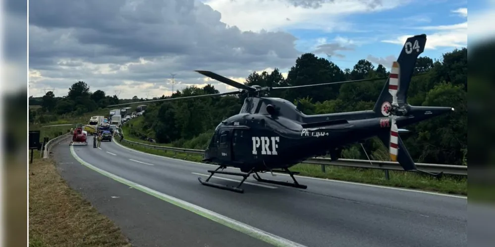 Na cena, havia mais duas aeronaves (PMPR e SAMU Ponta Grossa), diversas ambulâncias e viaturas de resgate, além de viaturas da PRF.