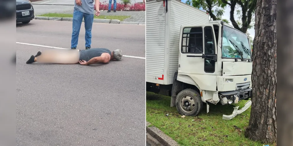 Um homem pelado foi preso, na manhã desta quinta-feira (5), após roubar um caminhão e causar diversos acidentes enquanto dirigia em alta velocidade pelas ruas de Curitiba. Veja o vídeo abaixo.