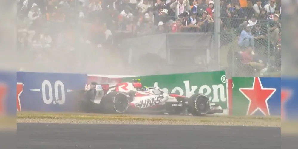 Momento do acidente de Bearman no GP do Japão -
