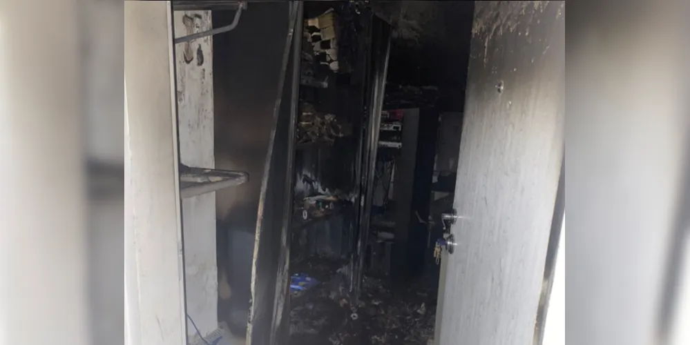 Sala ficou completamente destruída após o incêndio | Autor: Reprodução/Colaboração