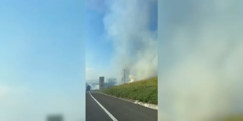 Registro foi feito na PRC-373, próximo ao acesso secundário de Ponta Grossa; incêndio ocorre no sentido Castro da rodovia