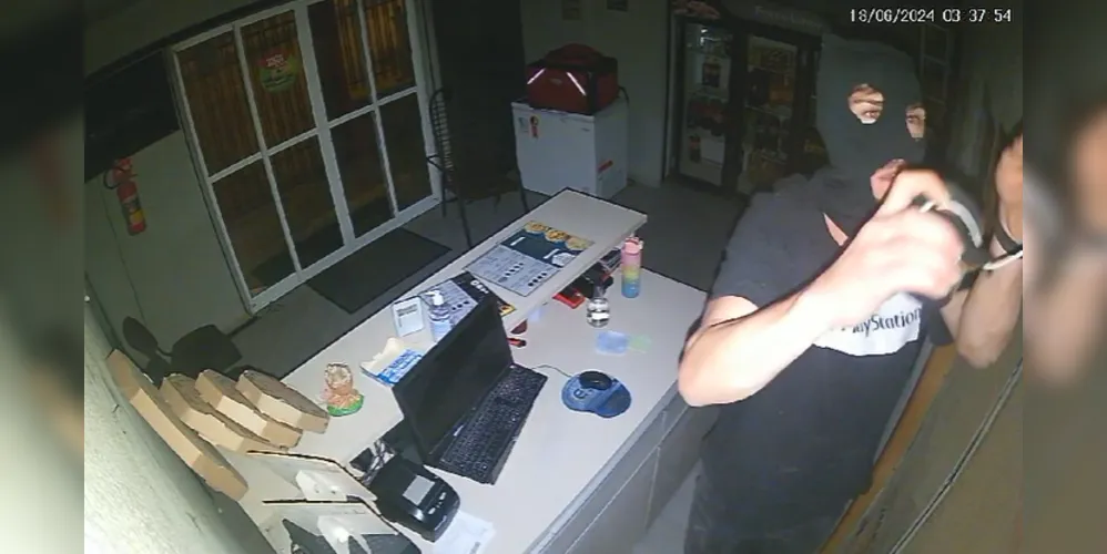 Um homem mascarado foi flagrado furtando uma pizzaria de Ponta Grossa, na madrugada desta terça-feira (18), por meio de uma das câmeras de segurança do local.