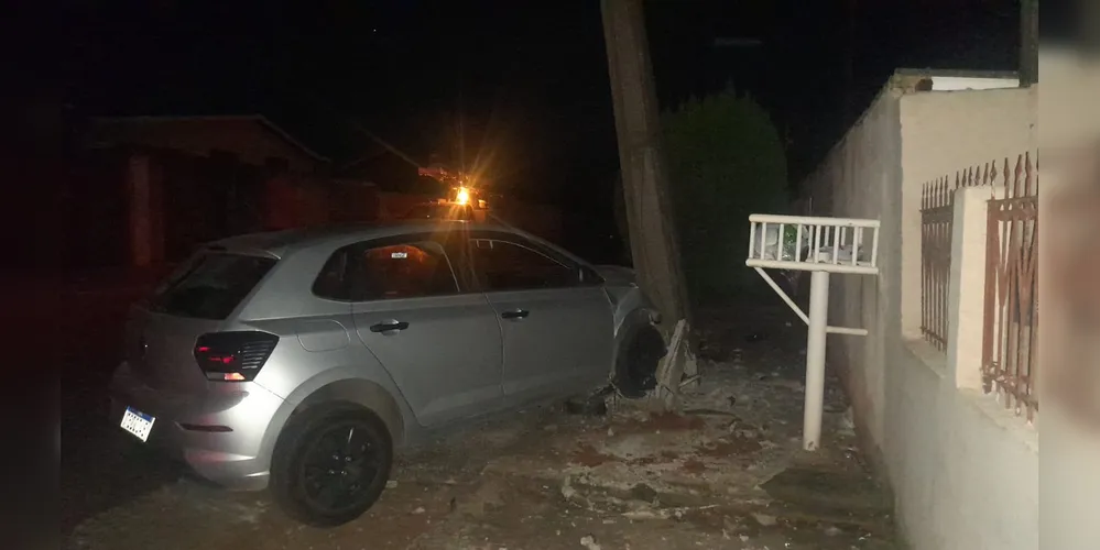 Um carro de aplicativo bateu em um poste de alta tensão na noite deste sábado (4) na Rua Osmário Gonçalves, na região do Neves, em Ponta Grossa.