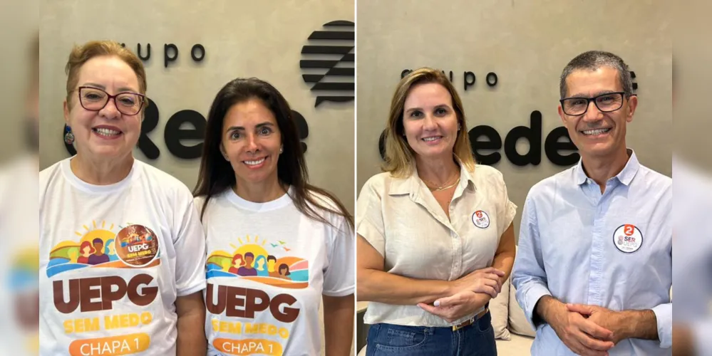 A nova Reitoria da Universidade Estadual de Ponta Grossa (UEPG) será definida pela comunidade universitária nesta quinta-feira (9). Duas chapas concorrem ao cargo, sendo elas a chapa 1 'UEPG sem medo', composta por Marilisa Oliveira, candidata à reitora, e Jeaneth Nunes, candidata à vice-reitora; e a chapa 2 'Ser UEPG', composta por Ivo Mottin Demiate, candidato a reitor, e Adriana Campagnoli, candidata à vice-reitora