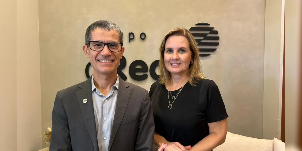 Eleitos para a Reitoria da Universidade Estadual de Ponta Grossa (UEPG), os professores Ivo Mottin Demiate e Adriana Campagnoli visitaram a sede do Grupo aRede nesta sexta-feira (10) para discutir seus projetos para o futuro da instituição com a equipe 'Ser UEPG', que assume a direção da universidade em setembro de 2026.