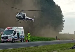 Motorista fica ferido após caminhão colidir contra defensa e tombar na PR-151, em Piraí do Sul CAMPOS GERAIS