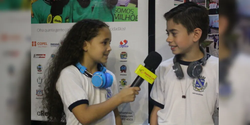 Artur e Izabelly, vencedores do Concurso do projeto do Grupo aRede junto ao 4º ano da Escola Prefeito Nilson Gorski, fizeram agradecimentos e comentaram os ganhos educacionais em 2022