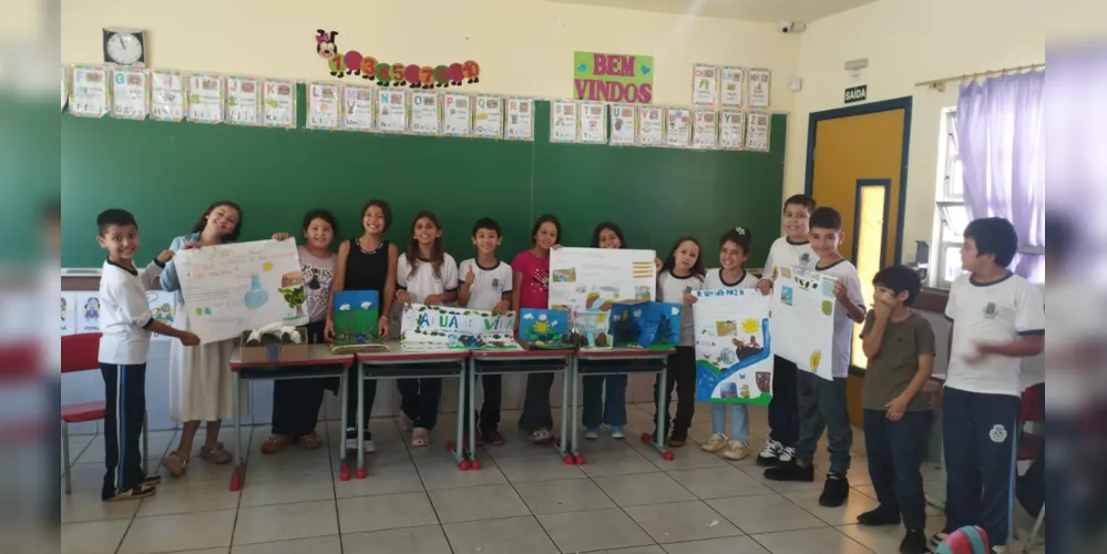 Proposta de cuidar da água e evitar casos de escassez na região, levou quarto ano da Escola do Campo Professor Elias Abraão a elaborar cartazes e maquetes dentro do tema hídrico