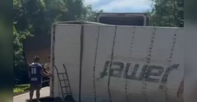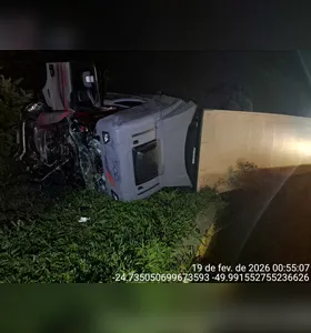 Caminhão tomba após colisão traseira e motorista fica ferido na PR-151 em Castro