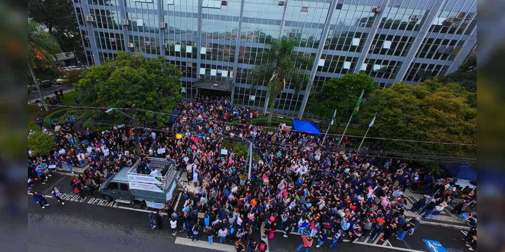 O Portal aRede esteve no local e acompanhou a intensa movimentação entre os sindicalistas. Com cartazes e carro de som, os profissionais reivindicavam melhorias. Imagens aéreas mostram grande concentração de pessoas nos arredores do prédio público.